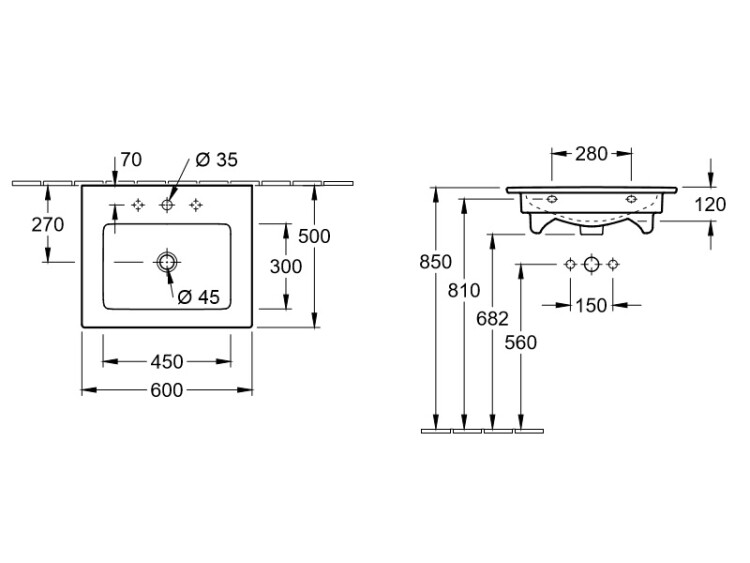 Раковина, Villeroy&Boch, Venticello, ширина, мм-600, глубина, мм-500, тип установки-настенный, отверстия для смесителя-1 сквозное, 2 промаркированных, перелив-есть, материал-санфарфор, вид грязеотталкивающего покрытия-CeramicPlus, цвет-альпийский белый Раковина, Villeroy&Boch, Venticello, шг 600*500, отверстия для смесителя-1 сквозное, 2 промаркированных, CeramicPlus, цвет-альпийский белый