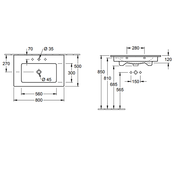 Раковина, Villeroy&Boch, Venticello, ширина, мм-800, глубина, мм-500, высота, мм-165, тип установки-на тумбу, отверстия для смесителя-1 сквозное, 2 промаркированных, с переливом, материал-санфарфор, цвет-альпийский белый Раковина, Villeroy&Boch, Venticello, шг 800*500*165, отверстия для смесителя-1 сквозное, 2 промаркированных, цвет-альпийский белый