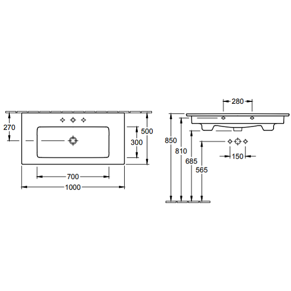 Раковина, Villeroy&Boch, Venticello, ширина, мм-1000, глубина, мм-500, высота, мм-165, отверстия для смесителя-отсутствуют, перелив-есть, декор-без декора, крепёж-есть, цвет-альпийский белый Раковина, Villeroy&Boch, Venticello, шгв 1000*500*165, цвет-альпийский белый