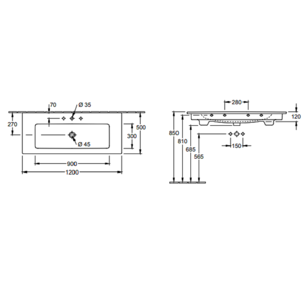 Раковина, Villeroy&Boch, Venticello, ширина, мм-1200, глубина, мм-500, высота, мм-165, отверстия для смесителя-одно, перелив-есть, грязеотталкивающее покрытие-CeramicPlus, цвет-альпийский белый Раковина, Villeroy&Boch, Venticello, шгв 1200*500*165, CeramicPlus, цвет-альпийский белый
