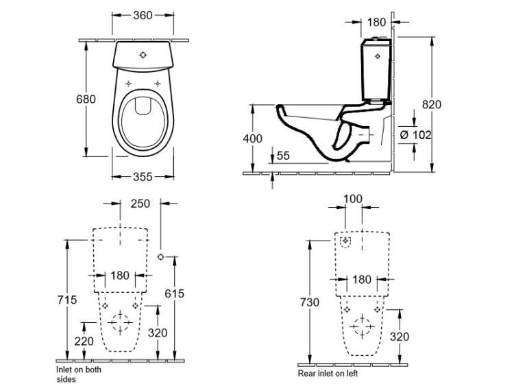 Сливной бачок, Villeroy&Boch, O'Novo, ширина, мм-360, глубина, мм-180, объем сливного бачка, л-3/6, тип смыва-двойной, подключение воды-сбоку или сзади, материал-санфарфор, цвет кнопки-хром, цвет-альпийский белый, крепежный комплект входит в комплект поставки Сливной бачок, Villeroy&Boch, O'Novo, шг 360*180, цвет-альпийский белый