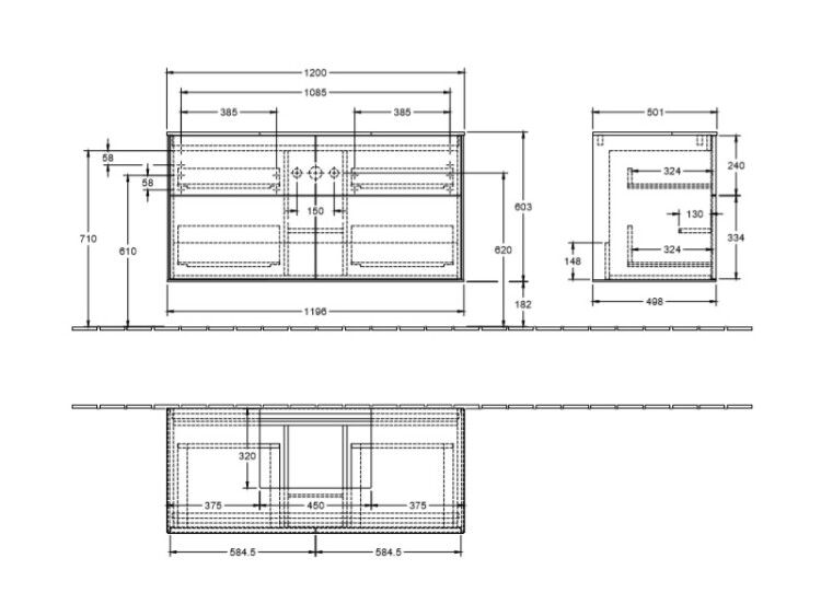 Тумба под раковину, Villeroy&Boch, Finion, ширина, мм-1200, глубина, мм-501, высота, мм-603, тип установки-подвесной, форма мебели-прямоугольная, раковина-необходимо заказать, монтаж раковины-в центре, консоль/столешница-в комплекте, цвет столешницы-стекло белое матовое, ящики-4, открывание-выдвижное, с противоскользящим ковриком, крепления в комплекте, материал корпуса-МДФ лак, материал фасада-МДФ лак, цвет-Glossy White Lacquer, в комплекте-2 пакета с аксессуарами Тумба под раковину, Villeroy&Boch, Finion, шгв 1200*501*603, раковина-необходимо заказать, цвет-Glossy White Lacquer