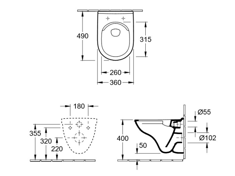 Унитаз, Villeroy&Boch, O'Novo, безободковый (с открытым смывным краем), тип установки-подвесной, ширина, мм-360, глубина, мм-490, высота, мм-350, форма чаши-овальная, выпуск-горизонтальный, материал-керамика, сиденье-в комплекте, цвет-альпийский белый, с вертикальным смывом, комбинированная упаковка Унитаз, Villeroy&Boch, O'Novo, подвесной, шгв 360*490*350, цвет-альпийский белый