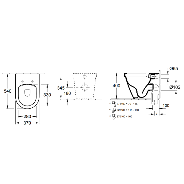 Унитаз, Villeroy&Boch, Architectura, напольный, ширина, мм-370, глубина, мм-540, высота, мм-400, тип установки-пристенный, форма чаши-овальная, выпуск-горизонтальный, сиденье в комплекте-необходимо заказать, грязеотталкивающее покрытие-есть, крепёж-есть, цвет-альпийский белый ceramicplus Унитаз пристенный, Villeroy&Boch, Architectura, шгв 370*540*400, CeramicPlus, цвет-альпийский белый