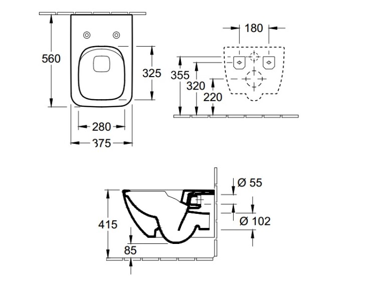 Унитаз, Villeroy&Boch, Venticello, тип установки-подвесной, ширина, мм-375, глубина, мм-560, форма чаши-прямоугольная, выпуск-горизонтальный, сиденье в комплекте-есть, с функцией QuickRelease и SoftClosing, грязеотталкивающее покрытие-CeramicPlus, цвет-альпийский белый Унитаз, Villeroy&Boch, Venticello, подвесной, шг 375*560, CeramicPlus, цвет-альпийский белый