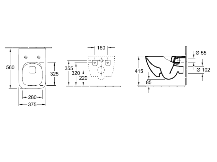 Унитаз, Villeroy&Boch, Venticello, безободковый (с открытым смывным краем), тип установки-подвесной, ширина, мм-375, глубина, мм-560, высота, мм-330, форма чаши-прямоугольная, выпуск-горизонтальный, материал-санфарфор, сиденье-в комплект не входит (приобретается отдельно), крепления в комплекте, цвет-альпийский белый Унитаз, Villeroy&Boch, Venticello, подвесной, шгв 375*560*330, цвет-альпийский белый