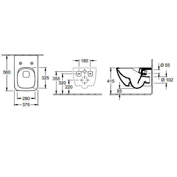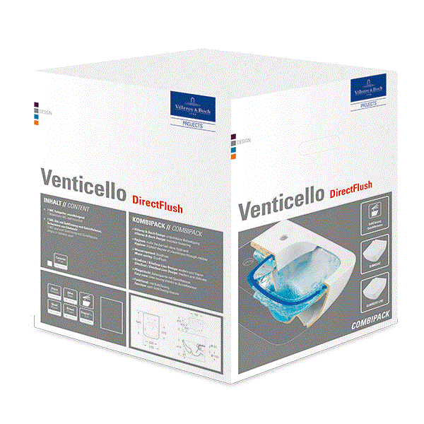 Унитаз, Villeroy&Boch, Venticello, безободковый (с открытым смывным краем), тип установки-подвесной, ширина, мм-375, глубина, мм-560, высота, мм-415, форма чаши-прямоугольная, выпуск-горизонтальный, сиденье-в комплекте, вид грязеотталкивающего покрытия-CeramicPlus, крепления в комплекте, цвет-альпийский белый Унитаз, Villeroy&Boch, Venticello, подвесной, шгв 375*560*415, CeramicPlus, цвет-альпийский белый