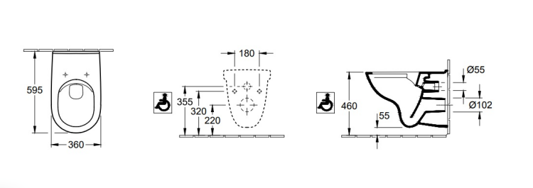 Унитаз, Villeroy&Boch, ViCare, безободковый (с открытым смывным краем), тип установки-подвесной, ширина, мм-360, глубина, мм-595, высота, мм-460, форма чаши-овальная, выпуск-горизонтальный, материал-керамика, бачок-необходима система инсталляции, скрытый бачок, сиденье-необходимо заказать, вид грязеотталкивающего покрытия-CeramicPlus, AntiBac, с функцией DirectFlush, цвет-альпийский белый Унитаз, Villeroy&Boch, ViCare, подвесной, шгв 360*595*460, CeramicPlus, AntiBac, DirectFlush, цвет-альпийский белый