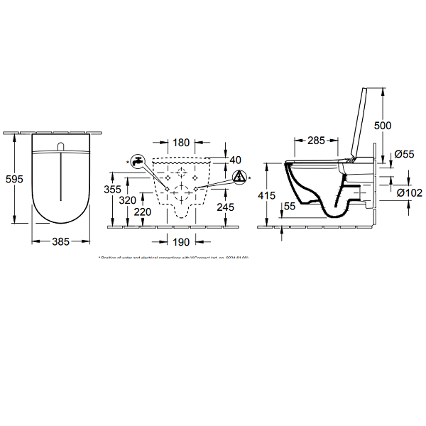 Унитаз, Villeroy&Boch, Viclean, безободковый (с открытым смывным краем), тип установки-подвесной, ширина, мм-385, глубина, мм-595, высота, мм-360, форма чаши-овальная, выпуск-горизонтальный, сиденье с функцией биде-в комплекте, вид грязеотталкивающего покрытия-CeramicPlus, цвет-альпийский белый Унитаз, Villeroy&Boch, Viclean, подвесной, шгв 385*595*360, CeramicPlus, цвет-альпийский белый