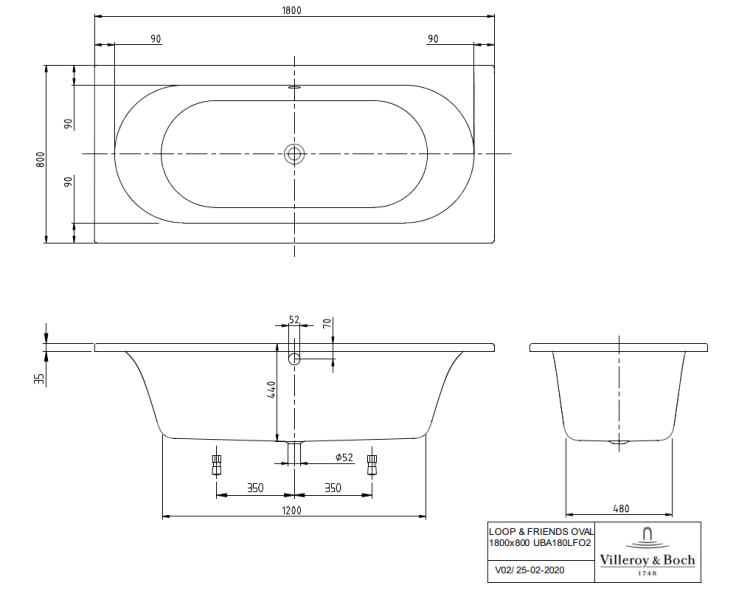 Ванна, Villeroy&Boch, Loop&Friends, ширина, мм-1800, глубина, мм-800, высота, мм-440, водоизмещение (л)-135, тип установки-встраиваемый/пристенный, форма-прямоугольная, слив-перелив-необходимо заказать, диаметр слива, мм-52, материал-акрил, цвет-альпийский белый Ванна, Villeroy&Boch, Loop&Friends, шгв 1800*800*440, цвет-альпийский белый