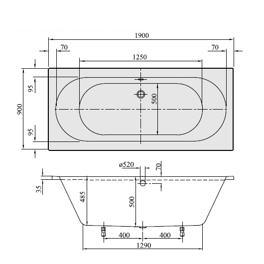 Ванна, Villeroy&Boch, O.Novo, ширина, мм-1900, глубина, мм-900, высота, мм-525, водоизмещение (л)-220, тип установки-встраиваемый/пристенный, форма-прямоугольная, слив-перелив-необходимо заказать, диаметр слива, мм-52, ножки-необходимо заказать, материал-акрил, цвет-альпийский белый Ванна, Villeroy&Boch, O.Novo, шгв 1900*900*525, цвет-альпийский белый