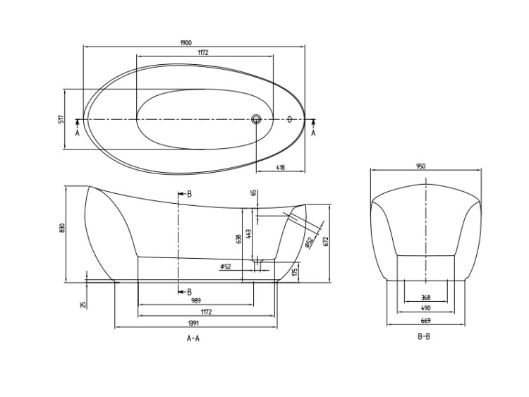 Ванна, Villeroy&Boch, Aveo New Generation , ширина, мм-1900, глубина, мм-950, высота, мм-443, водоизмещение (л)-245, тип установки-отдельностоящий, форма-овальная, слив-перелив-в комплекте, диаметр слива, мм-52, материал-Quaryl, цвет-белый Ванна, Villeroy&Boch, Aveo New Generation , шгв 1900*950*443, цвет-белый