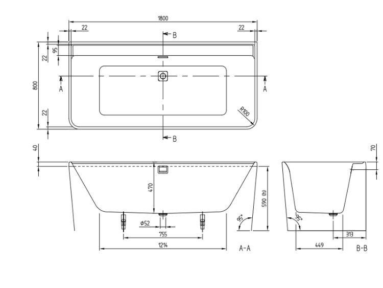 Ванна, Villeroy&Boch, Collaro, ширина, мм-1800, глубина, мм-800, высота, мм-470, водоизмещение (л)-218, тип установки-пристенный, форма-прямоугольная, слив-перелив-в комплекте, цвет крышки слива-хром, диаметр слива, мм-52, ножки-есть, материал-акрил, цвет-альпийский белый/хром Ванна, Villeroy&Boch, Collaro, шгв 1800*800*470, цвет-альпийский белый/хром
