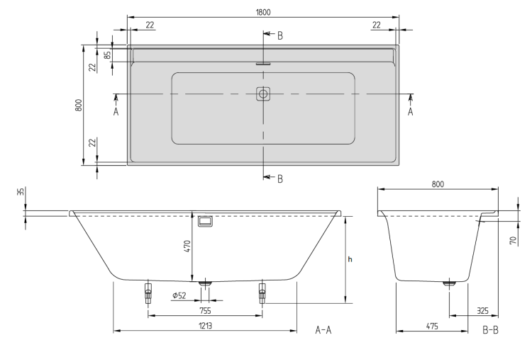 Ванна, Villeroy&Boch, Collaro, ширина, мм-1800, глубина, мм-800, высота, мм-470, водоизмещение (л)-190, тип установки-встраиваемый/пристенный, форма-прямоугольная, слив-перелив-в комплекте, цвет крышки слива-хром, диаметр слива, мм-52, ножки-необходимо заказать, материал-акрил, цвет-камень белый (Stone White)/хром Ванна, Villeroy&Boch, Collaro, шгв 1800*800*470, цвет-камень белый (Stone White)/хром