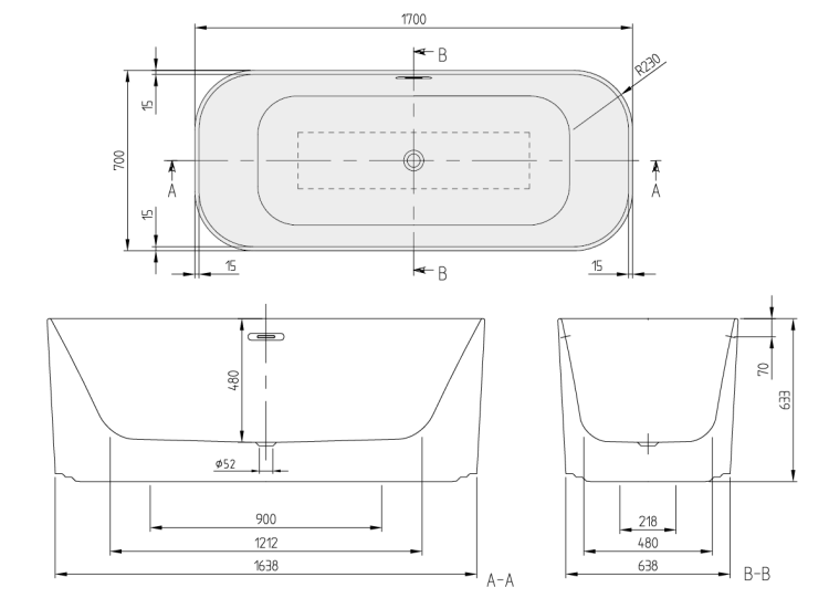 Ванна, Villeroy&Boch, Finion, ширина, мм-1700, глубина, мм-700, высота, мм-480, водоизмещение (л)-221, тип установки-отдельностоящий, форма-прямоугольная, панель-есть, слив-перелив, клапан Push-to-Open-в комплекте, цвет крышки слива-золото, диаметр слива, мм-52, материал-Quaryl, пульт дистанционного управления для функции "Emotion"-необходимо заказать, цвет-камень белый (Stone White)/золото Ванна, Villeroy&Boch, Finion, шгв 1700*700*480, цвет-камень белый (Stone White)/золото