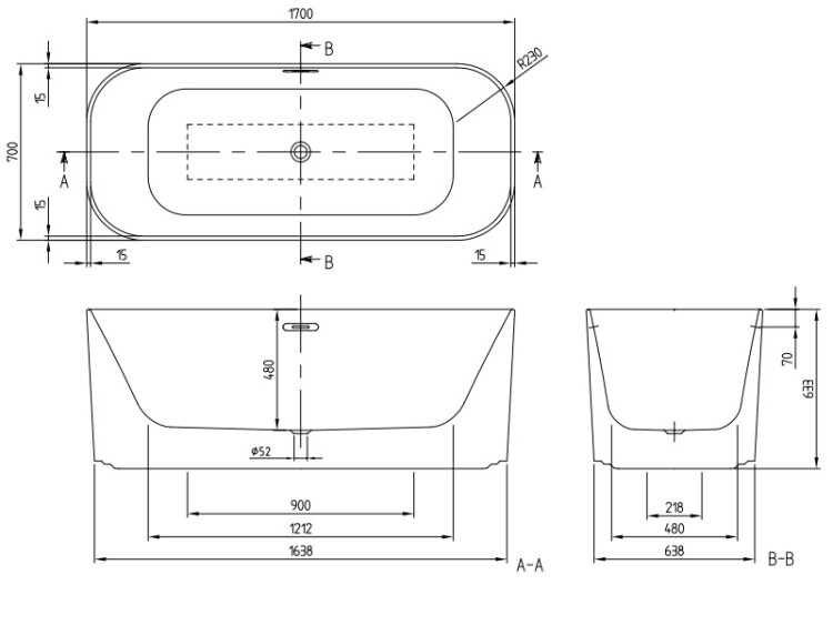 Ванна, Villeroy&Boch, Finion, ширина, мм-1700, глубина, мм-700, высота, мм-480, водоизмещение (л)-221, тип установки-отдельностоящий, форма-прямоугольная, материал-Quaryl, цвет-альпийский белый, с предварительно смонтированным клапаном push-to-open и переливом, кольцом Design и функцией Emotion Ванна, Villeroy&Boch, Finion, шгв 1700*700*480, цвет-альпийский белый