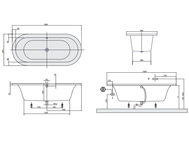 Ванна, Villeroy&Boch, Loop&Friends Oval Duo, ширина, мм-1800, глубина, мм-800, высота, мм-440, водоизмещение (л)-135, тип установки-встраиваемый/пристенный, форма-овальная, слив-перелив-необходимо заказать, диаметр слива, мм-52, ножки-необходимо заказать, материал-акрил, цвет-альпийский белый Ванна, Villeroy&Boch, Loop&Friends Oval Duo, шгв 1800*800*440, цвет-альпийский белый