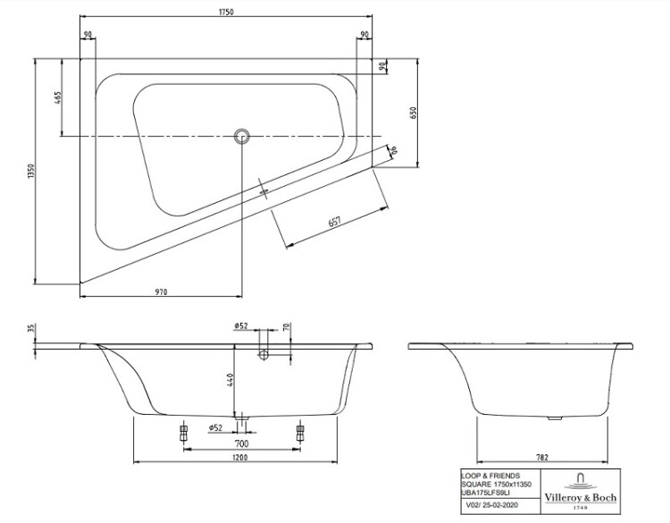 Ванна, Villeroy&Boch, Loop&Friends, ширина, мм-1750, глубина, мм-1350, высота, мм-440, водоизмещение (л)-215, тип установки-пристенный, форма-ассиметричная, слив-перелив-необходимо заказать, диаметр слива, мм-52, ножки-необходимо заказать, материал-акрил, цвет-альпийский белый (белый Alpin), левосторонняя версия, с угловатой внутренней формой Ванна, Villeroy&Boch, Loop&Friends, шгв 1750*1350*440, цвет-альпийский белый