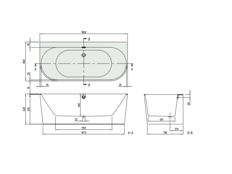 Ванна, Villeroy&Boch, Oberon 2.0, ширина, мм-1800, глубина, мм-800, высота, мм-460, водоизмещение (л)-205, тип установки-пристенный, форма-овальная, слив-перелив-в комплекте, диаметр слива, мм-52, материал-Quaryl, цвет-альпийский белый Ванна, Villeroy&Boch, Oberon 2.0, шгв 1800*800*460, цвет-альпийский белый