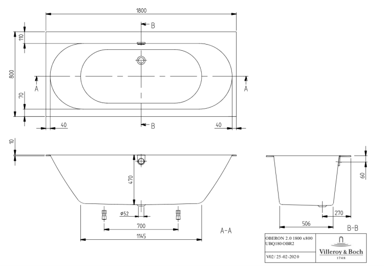 Ванна, Villeroy&Boch, Oberon 2.0, ширина, мм-1800, глубина, мм-800, высота, мм-470, водоизмещение (л)-190, тип установки-встраиваемый/пристенный, форма-прямоугольная, слив-перелив-в комплекте, диаметр слива, мм-52, ножки-есть, материал-Quaryl, цвет-камень белый (Stone White) Ванна, Villeroy&Boch, Oberon 2.0, шгв 1800*800*470, цвет-камень белый (Stone White)