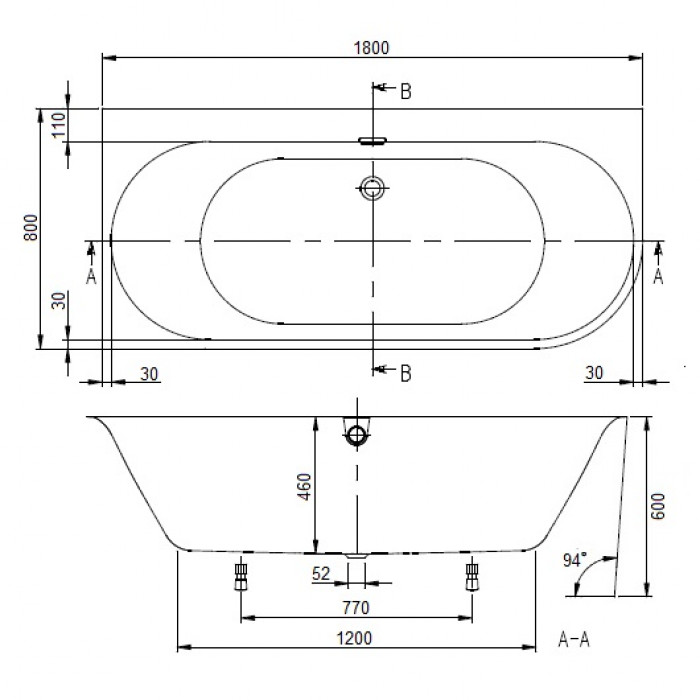 Ванна, Villeroy&Boch, Oberon 2.1, левосторонняя, ширина, мм-1800, глубина, мм-800, высота, мм-460, водоизмещение (л)-183, тип установки-пристенный, форма-овальная, панель-есть, слив-перелив-в комплекте, диаметр слива, мм-52, ножки-есть, материал-Quaryl, цвет-альпийский белый Ванна, Villeroy&Boch, Oberon 2.1, левосторонняя, шгв 1800*800*460, цвет-альпийский белый