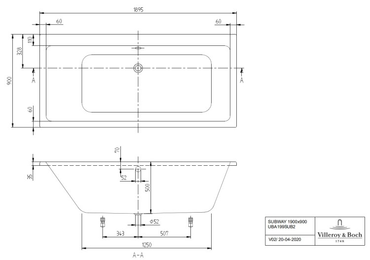 Ванна, Villeroy&Boch, Subway, ширина, мм-1900, глубина, мм-900, высота, мм-525, водоизмещение (л)-230, тип установки-встраиваемый/пристенный, форма-прямоугольная, слив-перелив-необходимо заказать, диаметр слива, мм-52, ножки-необходимо заказать, материал-акрил, цвет-альпийский белый Ванна, Villeroy&Boch, Subway, шгв 1900*900*525, цвет-альпийский белый