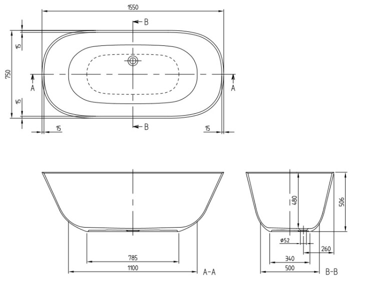 Ванна, Villeroy&Boch, Theano, ширина, мм-1550, глубина, мм-750, высота, мм-480, водоизмещение (л)-250, тип установки-отдельностоящая, форма-овальная, диаметр слива, мм-52, материал-Quaryl, цвет-альпийский белый Ванна, Villeroy&Boch, Theano, шгв 1550*750*480, цвет-альпийский белый