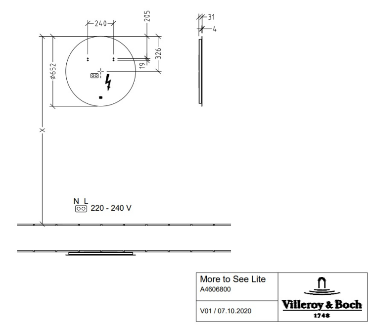 Зеркало, Villeroy&Boch, More To See, круглое, ширина, мм-650, глубина, мм-31, высота, мм-650, тип установки-настенный, с подсветкой, тип освещения-светодиодная подсветка (LED), по периметру (незаменяемая) освещение: 1x 17,28 W, крепления в комплекте Зеркало, Villeroy&Boch, More To See, круглое, шгв 650*31*650, с подсветкой