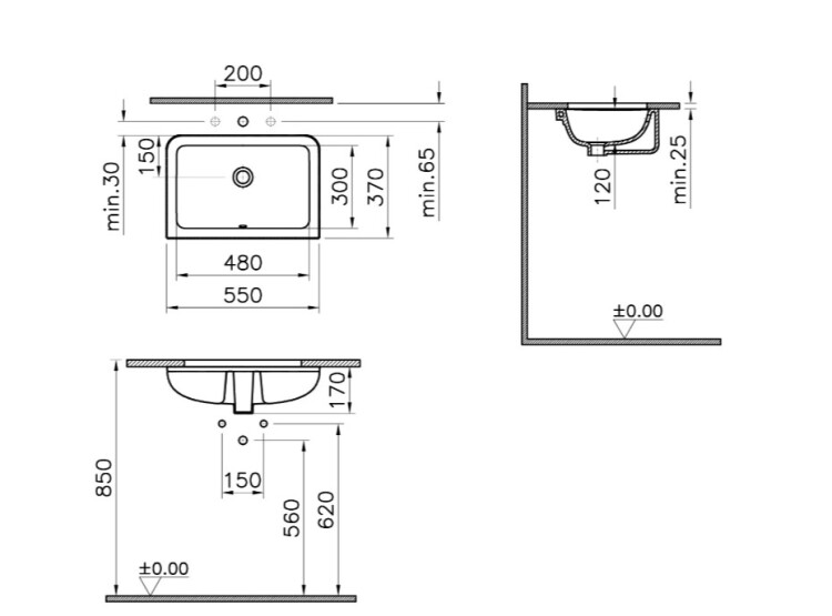Раковина, Vitra, S20, ширина, мм-550, глубина, мм-370, высота, мм-170, тип установки-встраиваемый снизу, отверстия для смесителя-отсутствуют, с переливом, материал-керамика, цвет-белый Раковина, Vitra, S20, шгв 550*370*170, отверстия для смесителя-отсутствуют, цвет-белый