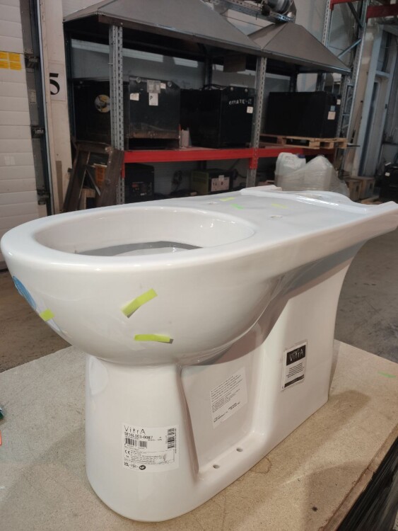 Унитаз, Vitra, Conforma, традиционный (с закрытым смывным краем), тип установки-напольный, ширина, мм-360, глубина, мм-750, высота, мм-460, форма чаши-овальная, выпуск-горизонтальный, материал-керамика, бачок-необходимо заказать, сиденье-необходимо заказать, вид грязеотталкивающего/антибак покрытия-нет/VitrA Hygiene, цвет-белый, тип дефекта - царапины Унитаз, Vitra, Conforma, напольный, шгв 360*750*460, VitrA Hygiene, цвет-белый, тип дефекта - царапины