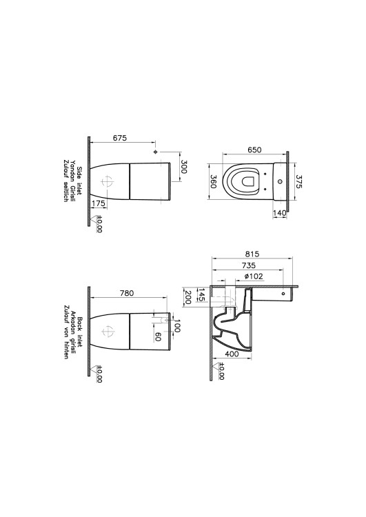 Вид унитаза безободковый (с открытым смывным краем)