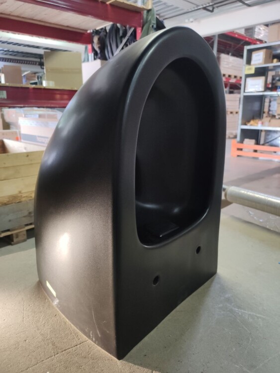 Унитаз, Vitra, Sento, безободковый (с открытым смывным краем), тип установки-подвесной, ширина, мм-365, глубина, мм-540, высота, мм-340, форма чаши-овальная, выпуск-горизонтальный, материал-керамика, сиденье-необходимо заказать, вид грязеотталкивающего/антибак покрытия-нет/VitrA Hygiene, крепления в комплекте, цвет-черный матовый, тип дефекта - царапины Унитаз, Vitra, Sento, подвесной, шгв 365*540*340, VitrA Hygiene, цвет-черный матовый, тип дефекта - царапины