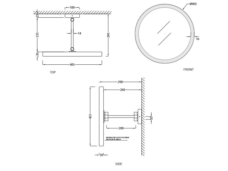 Зеркало, CIELO, Arcadia, Pluto, ширина, мм-400, глубина, мм-290, высота, мм-400, тип установки-настенный, есть, тип освещения-LED, рама-есть, цвет-Nero Matt, с выключателем Зеркало, CIELO, Arcadia, Pluto, шгв 400*290*400, есть, цвет-Nero Matt