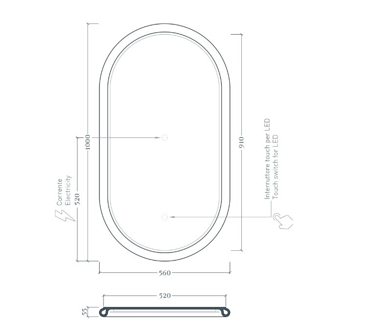 Зеркало, Artceram, Milano, овальное, ширина, мм-550, глубина, мм-55, высота, мм-1000, тип установки-настенный, с подсветкой, тип освещения-светодиодная подсветка (LED), тип включения-сенсорный, рама-есть, материал рамы-керамика, декор-без декора, цвет рамы-brown matera Зеркало, Artceram, Milano, овальное, шгв 550*55*1000, с подсветкой, цвет рамы-brown matera