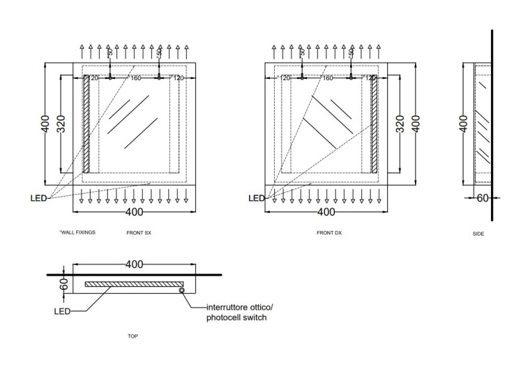 Зеркало, Cielo, Arcadia, квадратное, ширина, мм-400, глубина, мм-60, высота, мм-400, тип установки-настенный, с подсветкой, тип освещения-светодиодная подсветка (LED), слева Зеркало, Cielo, Arcadia, квадратное, шгв 400*60*400, с подсветкой слева