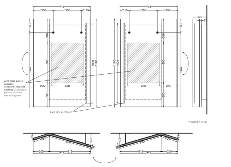 Зеркало, CIELO, Arcadia, прямоугольное, ширина, мм-715, глубина, мм-175, высота, мм-1100, тип установки-настенный, левосторонний или правосторонний, с подсветкой, тип освещения-светодиодная подсветка (LED), рама-есть, материал рамы-металл, крепления в комплекте, цвет рамы-черный матовый Зеркало, CIELO, Arcadia, прямоугольное, шгв 715*175*1100, с подсветкой, цвет рамы-черный матовый