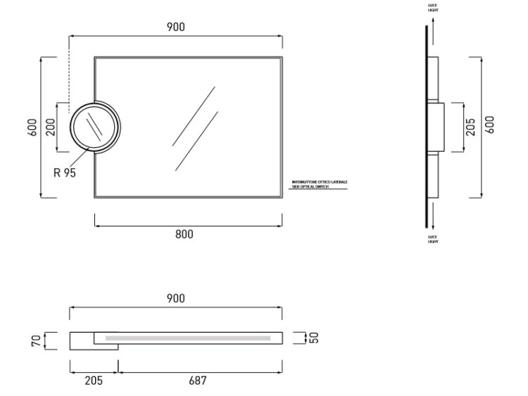 Зеркало, CIELO, Arcadia, Polifemo, ширина, мм-900, глубина, мм-70, высота, мм-600, тип установки-настенный, с подсветкой, тип освещения-LED, рама-есть, цвет-Matt Black, с выключателем Зеркало, CIELO, Arcadia, Polifemo, шгв 900*70*600, с подсветкой, цвет-Matt Black